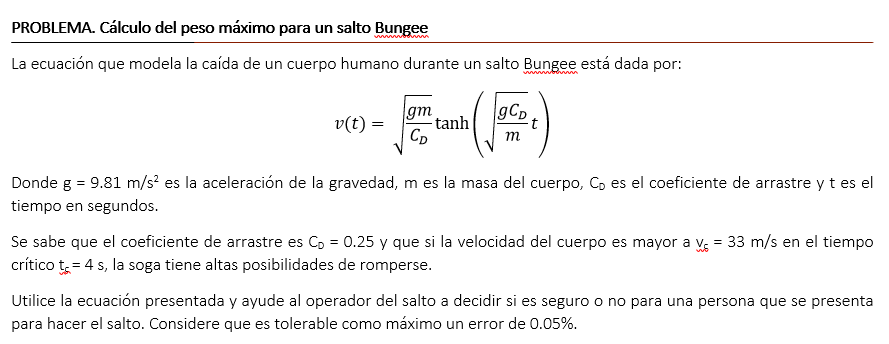 Resuelve la siguiente situación problemática aplicando todas las fases de la resolución de problemas computacionales. Para la fase de implementación utiliza simulador de Métodos Numéricos.